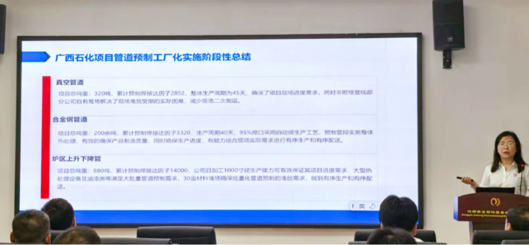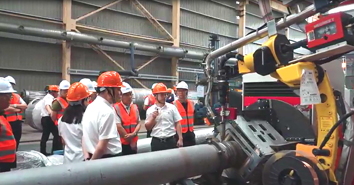 下午與會人員參觀了金童裝備公司的管道預制自動化生產(chǎn)線和二期新石化高端裝備研發(fā)和制造項目建設工地,并對中石油廣西乙烯項目在制的合金鋼預制管道進行了材料追溯審核和質(zhì)量控制的檢查和交流。
