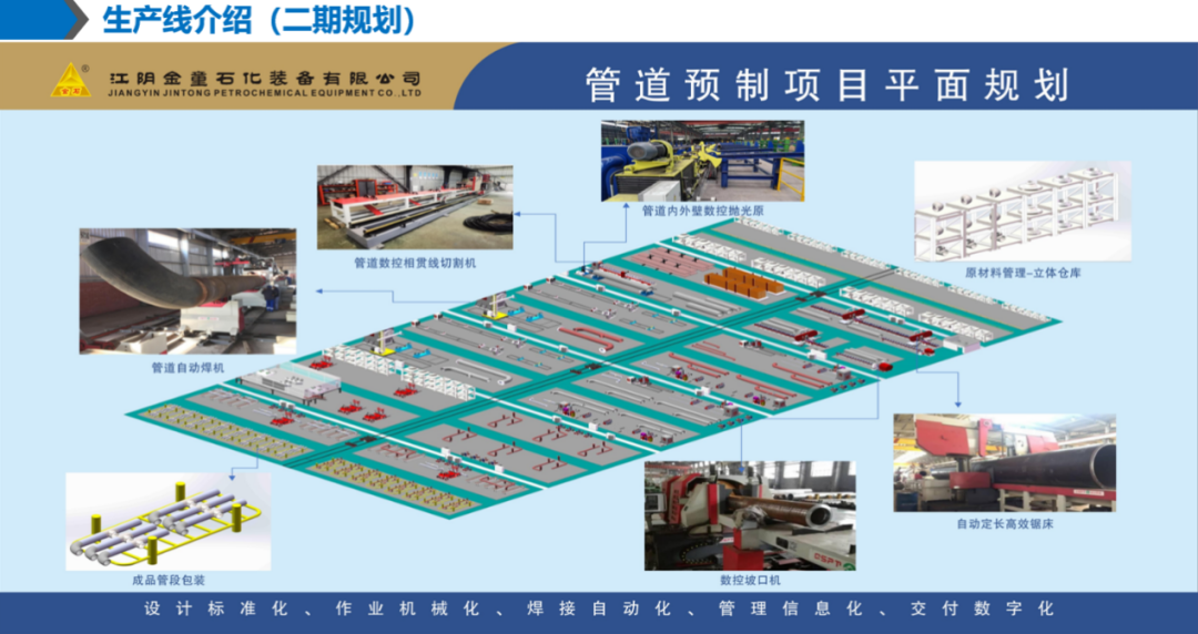 作為管道預制工廠化的實施主體之一,金童裝備公司三年前進行了戰(zhàn)略布局,相繼投入4億元,規(guī)劃建設了占地面積近40000㎡的智能制造示范性工廠,并計劃于2024年底全面建成,屆時集設計標準化、采購集約化、作業(yè)機械化、焊接自動化、管理信息化、交付數(shù)字化的先進管道預制智能制造項目將全面投用。在未來的工作中,金童裝備公司將繼續(xù)秉承“質(zhì)量第一、安全至上、創(chuàng)新驅(qū)動、綠色發(fā)展”的理念,以本次中期驗收為契機,進一步總結經(jīng)驗、查找不足、明確方向、制定措施,繼續(xù)深化“六化”建設在管道預制工廠化領域的應用與研究,努力推動課題工作再上新臺階、再創(chuàng)新佳績,不斷提升管道預制工廠化的水平,努力打造成為行業(yè)內(nèi)的標桿企業(yè)。
